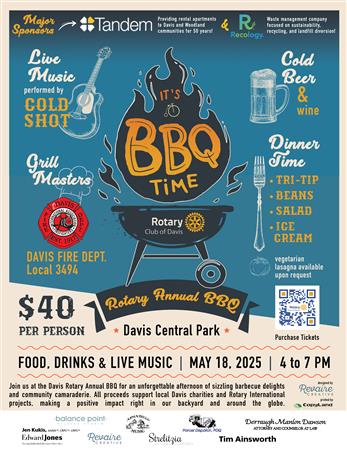 On Sunday, May 18, 2025, the Davis community came together for an unforgettable afternoon at Central Park for the Rotary Club of Davis Annual BBQ. From mouthwatering tri-tip dinners served by our very own Davis Firefighters Local 3494 to lively music from Cold Shot, the event was filled with great food, cold drinks, and even warmer connections.